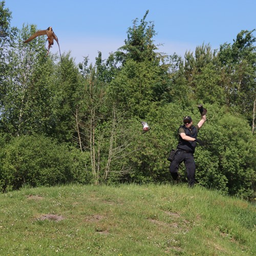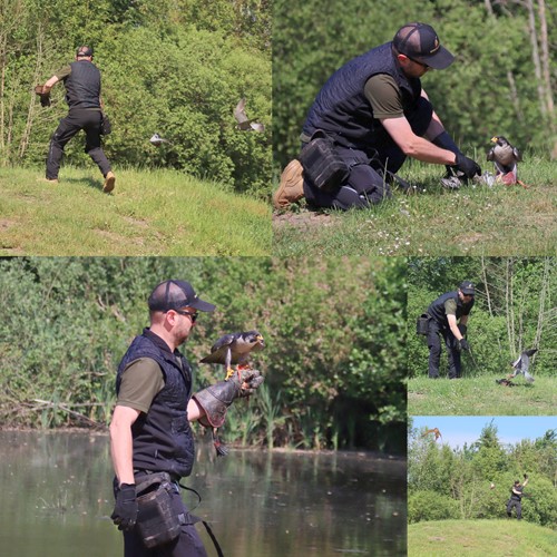 Det går ekstremt hurtigt under træningen i Ørnereservatet. Her ses vandrefalken Philip og Peter