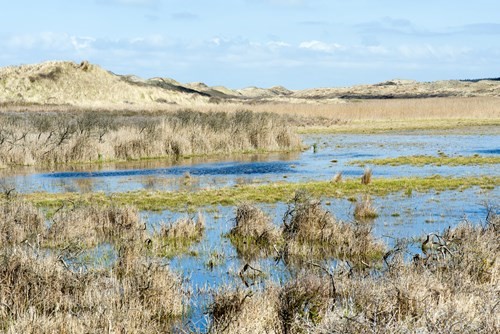 Masser af fredet natur i Ørnereservatet, som vi nu åbner op for publikum i små guidede ture. Blandt andet en botanisk tur med rovfugle ud til Simon Skrivers Klit, hvoraf flere kilometer af klitten ligger i vores 30 hektar store område.
