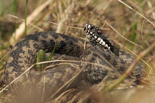 Det gik dog galt for en anden af vores havørne for nogle år siden. Selv om de er i tilbagegang, er der en del hugorme, snoge og stålorme i klitterne og hedearealet, som vi ser hvert år.
