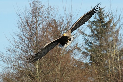 Og gæsterne skal nok mærke livet pulsere i blodbanerne, når de får øjenkontakt med verdens største ørne. Blandt andet de kæmpemæssige Stellers havørne fra Kamtjatka fra det nordøstlige Sibirien med et vingefang på tre meter, der på trænerens signal lander blødt imellem tilskuerne. Faktisk er Ørnereservatet det eneste sted i Europa, hvor man kan se Stellers havørne i frie omgivelser. Ørne, der har fundet sig så godt til rette i de danske forhold, at de er begyndt at bygge rede med blandt andet grene på tre meter.