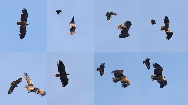 Henover Ørnereservatet oplever vi ofte musvåger der mobber både kongeørne og havørne: Foto PF Wenzel
