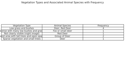Indtil videre har vildtkameraerne fanget imponerende billeder og videoer af et bredt udsnit af det lokale dyreliv. Dådyr, kronhjorte og råvildt er blandt de hyppigste gæster i området. Disse skønne dyr søger tilflugt og føde i reservatet, hvor de kan bevæge sig frit og uden forstyrrelser. Ud over disse imponerende hjorte har kameraerne også afsløret tilstedeværelsen af en eller flere ræve, der sniger sig rundt i skovbunden og jager smådyr.