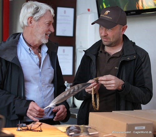 En ørnefjer er netop blevet overrakt marinarkæolog Jørgen Dencker på Ørnereservatet.