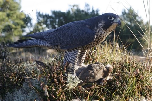 Vandrefalken er tilbage som ynglefugl i Danmark på Møns Klint og i 2002 fik de to unger på vingerne og de lader til at der er et stabilt grundlag for yngel -også i fremtiden da der nu næsten hvert år er unger.