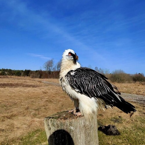 På billedet nyder vores lammegrib Barbatus det nye, store og mere åbne landskab med udsigt til klitten Simons Skrivers Klit 2026