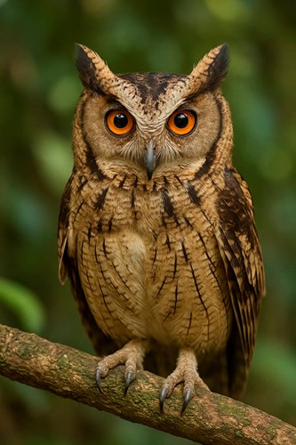 Når mørket falder på over Filippinernes tropiske øer, vågner en af landets mest særprægede, men ofte oversete, fugle. Den filippinske dværghornugle (Otus megalotis) er ikke stor – blot på størrelse med en solsort – men dens silhuet med de karakteristiske “øretoppe” og det intense, orange blik har gjort den til et særligt kendetegn i de filippinske skove. Den bærer sit latinske navn med rette: megalotis betyder “store ører” og henviser til de fjerkamme, der kan rejses som horn og give fuglen et nærmest teatralsk udtryk.