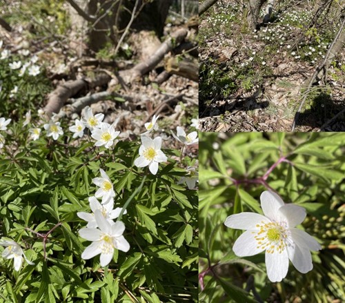 Bevæger man sig fra trækronerne ned mod skovbunden, mødes man af et andet af forårets vidundere. Allerede ved parkeringspladsen ruller det hvide anemonetæppe sig ud og byder velkommen.