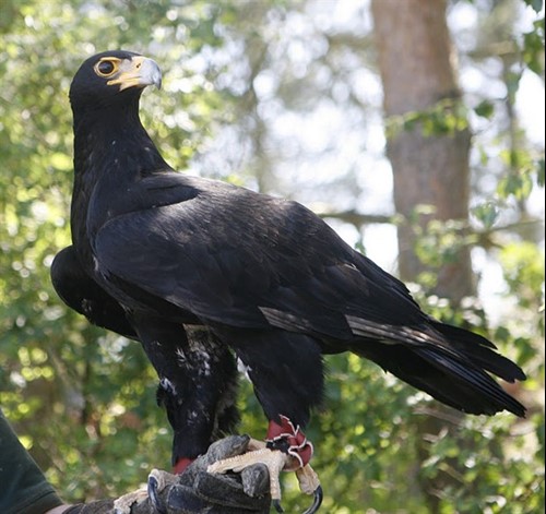 Ørnereservatet hunsortørn kunne faktisk ikke flyve da vi fik hende og var meget overvægtig, men med intensiv træning er det nu lykkes at få Sheba på vingerne over Ørnereservatet. Hun er nu i god kondi og flyver ubesværet store afstande omkring i Ørnereservatet.