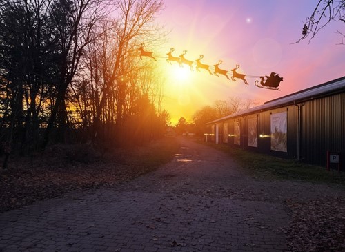 Der var en særlig stemning over hele dagen – en blanding af forventning, nærvær og den slags små øjeblikke, der gør vinteren hyggelig. Og som om naturen selv ville runde dagen af, faldt de sidste solstråler over området i et gyldent lys… lige indtil dagens egentlige hovedperson pludselig kom susende forbi i høj fart: julemanden selv, i sin kane, trukket af rensdyr, og stjal opmærksomheden totalt – præcis som på billedet :-)